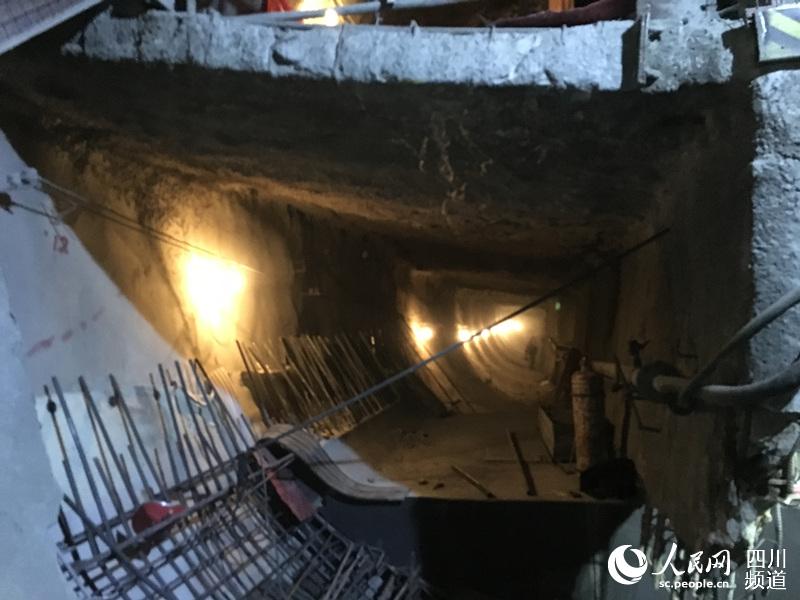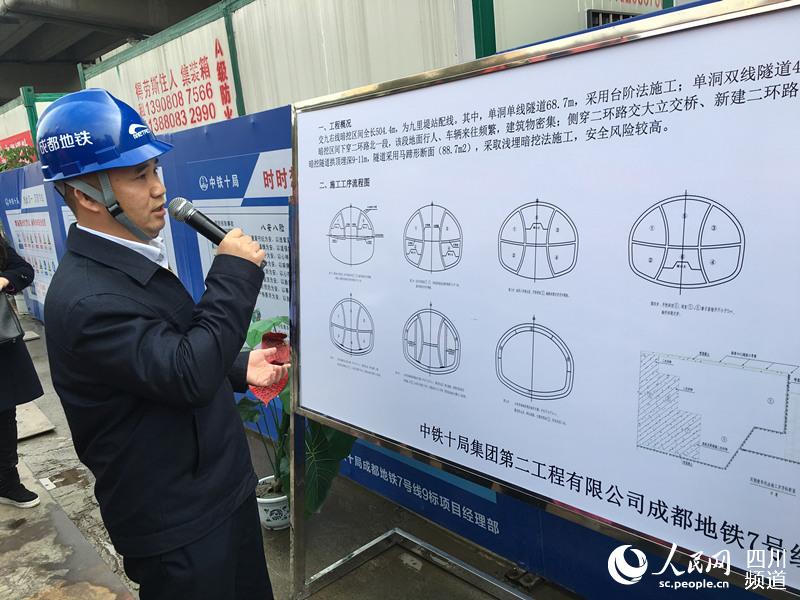 在成都二環(huán)路北一段高架橋的下方,地鐵七號線西南交大站—九里堤站的隧道正在施工,橋基從隧道旁“擦肩而過”,最近的地方僅有2.8米。為了保證路面交通暢通和高架橋的穩(wěn)定,地鐵施工放棄盾構機,首次采用雙側壁導坑法分六步,人工開挖。